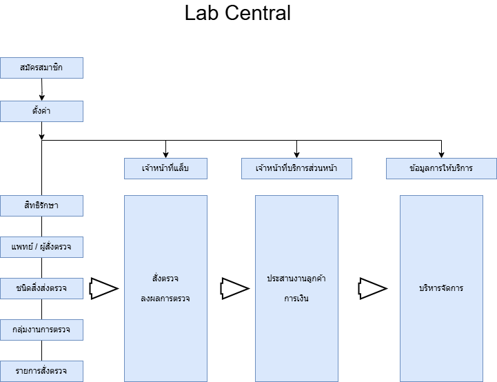 Lab Central คือบริการระบบสารสนเทศสำหรับห้องปฏิบัติการทางการแพทย์ ให้บริการผ่านระบบอินเตอร์เน็ตเว็บไซต์ (Web browser) โดยผู้ใช้งานสามารถจัดการข้อมูลต่าง ๆ ที่ใช้ในงานห้องปฏิบัติการทางแพทย์ เช่น ข้อมูลคำสั่งตรวจ ข้อมูลเจ้าหน้าที่ การจัดเก็บข้อมูลผู้ป่วย ข้อมูลการรักษา ข้อมูลผลการตรวจ และยังมีบริการส่วนเสริมที่จะช่วยให้ทำงานได้ทุกขั้นตอนของการให้บริการตรวจทางการแพทย์ ผู้ใช้งานมั่นใจได้ว่าข้อมูลในระบบมีการรองรับการเข้าถึงด้วยสิทธิต่าง ๆ การเข้ารหัสข้อมูลเพื่อความปลอดภัย การทำงานของระบบเป็นไปแบบเรียบง่าย ไม่ซับซ้อน ภายใต้งบประมาณค่าใช้จ่ายที่คุ้มค่า ใช้งานฟรี ทั้งนี้ทีมงาน Lab Central ขอขอบพระคุณผู้ใช้งานทุกท่านล่วงหน้า โดยหากมีข้อเสนอแนะเพิ่มเติม หรือข้อติชมใดๆ ท่านสามารถติดต่อทีมงานได้ที่อีเมล์ [email protected]